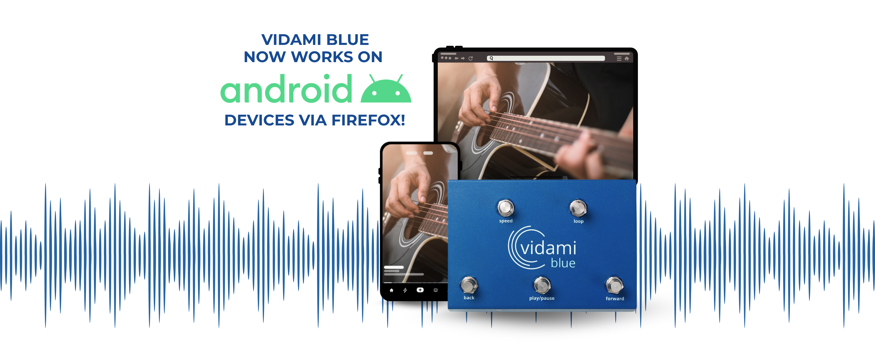 Two big things: Vidami now works on Android via the Firefox Add-On, and Firefox is now supported on Mac and Windows. Install the Add-On, pair your Vidami Blue or Original Vidami pedal, and you’re set.